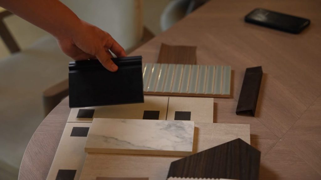 Esta etapa traduce todo el proceso previo en una propuesta visual clara. Complementamos la presentación con muestras físicas, asegurando que el diseño no se quede solo en lo visual, sino que pueda sentirse y validarse en materia y escala real.